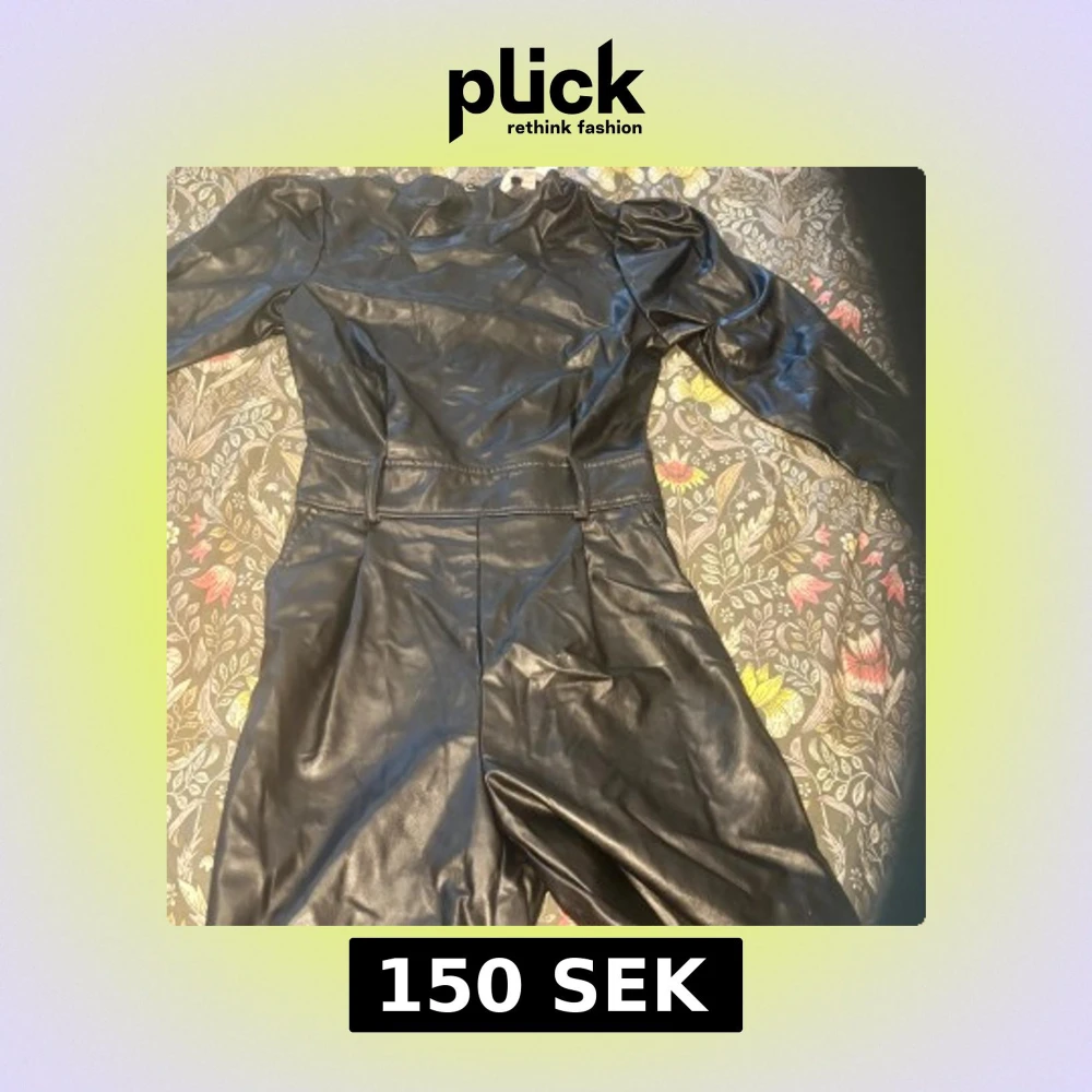 Cool svart klänning i skinnimitation från H&M med långa ärmar och markerad midja. Klänningen har en stilren look med lätt puff vid axlarna och rund hals. Perfekt för dig som vill sticka ut med en edgy vibe.