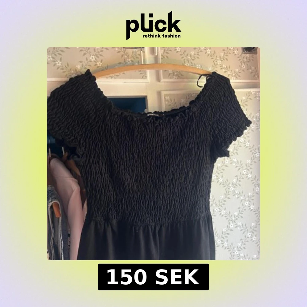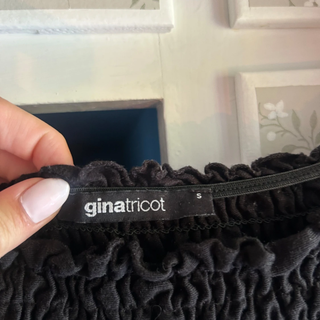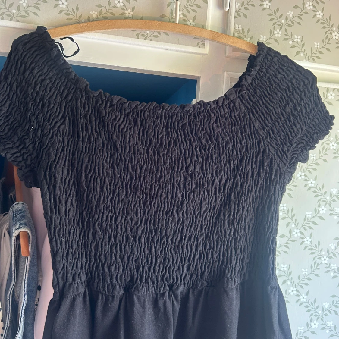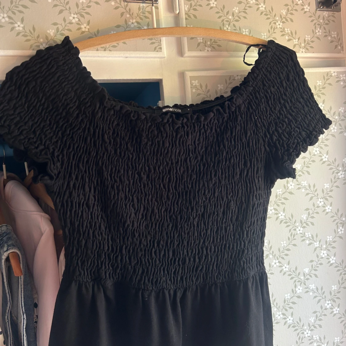 Svart kortklänning från Gina Tricot med smockad överdel och korta ärmar. Klänningen har en rundad halsringning och är tillverkad i mjukt bomullstyg. Perfekt för dig som gillar en enkel men trendig look.