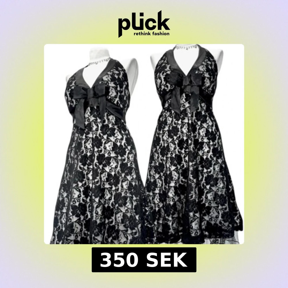 Så vacker halterneck klänning i spets med rosett framtill🖤 Köpte till min födelsedag men tyvärr passade den inte. Flera lager med tyll nertill. (Första bilden lånad av hon jag köpte den från!)
