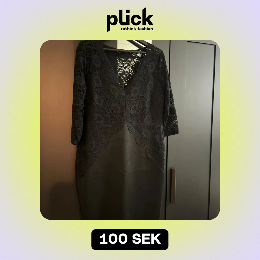 Elegant svart klänning från Dorothy Perkins i storlek L. Klänningen har en vacker spetsdesign med trekvartsärmar och en stilren v-ringning. Perfekt för festliga tillfällen eller en utekväll. Tillverkad i Storbritannien.