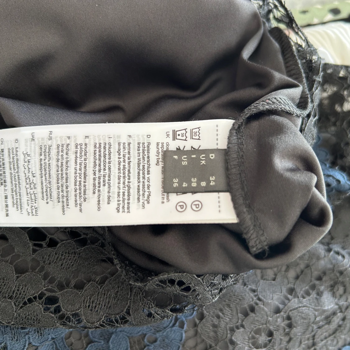 Snygg svart spetsklänning från Esprit med korta ärmar och ett elegant mönster. Perfekt för festliga tillfällen. Klänningen har en dragkedja i ryggen för enkel påklädning.