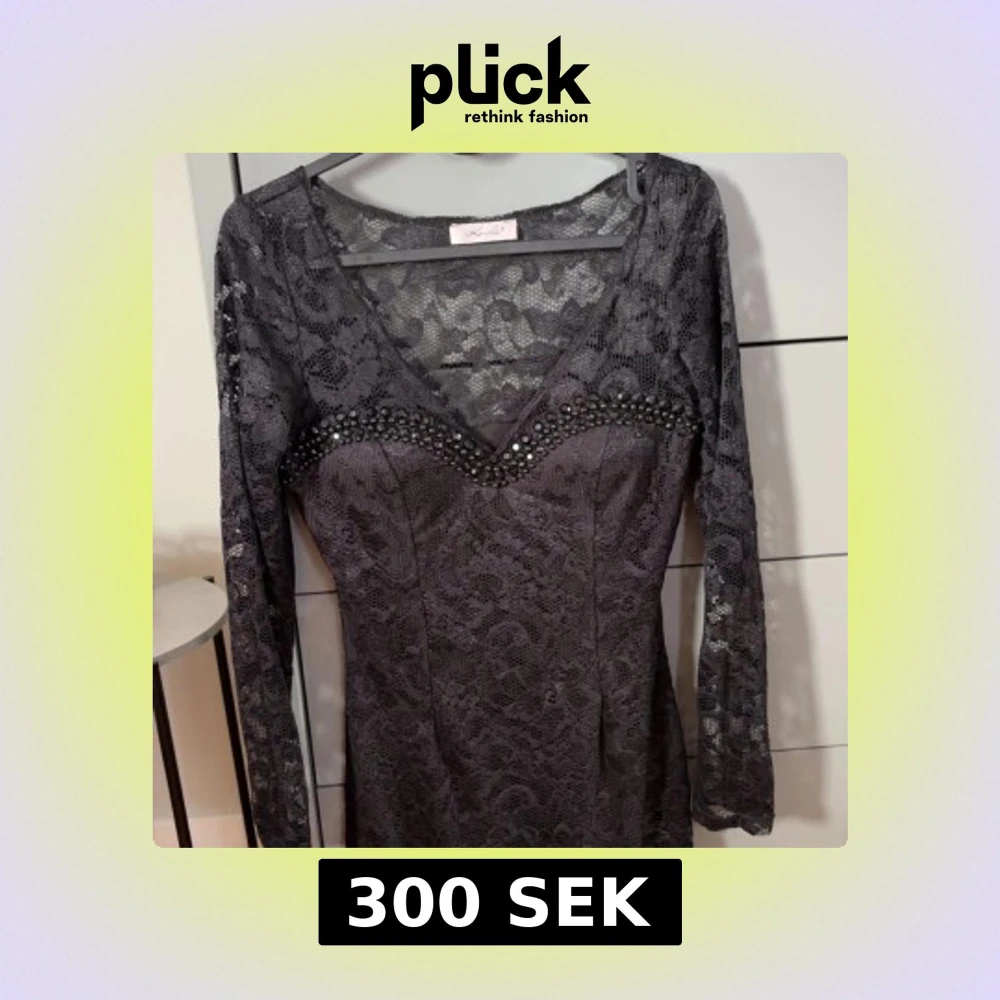 Supersnygg svart spetsklänning från Koucla med v-ringning och långa ärmar❣️❣️