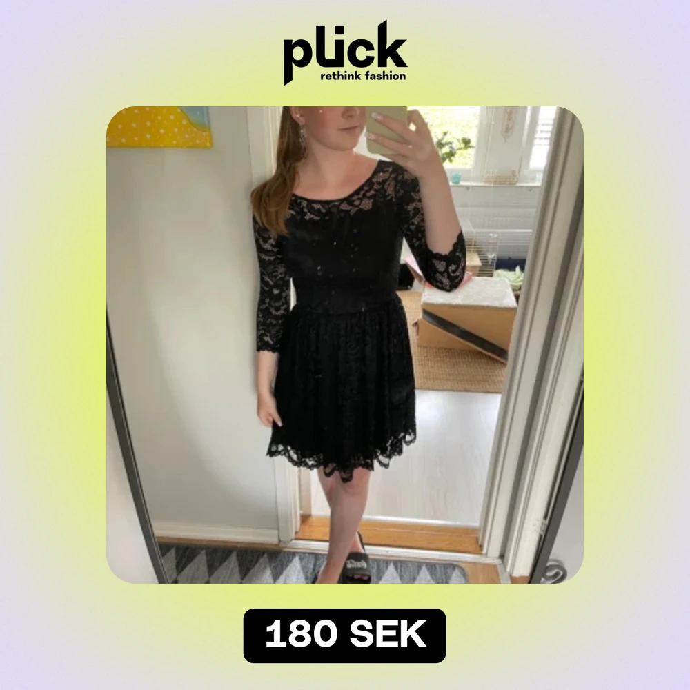 Säljer en elegant svart spetsklänning med trekvartsärm. Klänningen har en vacker spetsdesign och en tight passform som ger en stilren look. Den är även nästan aldrig använd och är Perfekt för festliga tillfällen! 💓