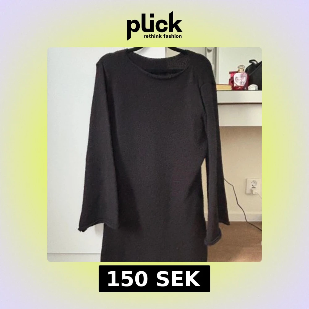 En svart stickad klänning med lång ärm och rak passform. Klänningen har en enkel, rund halsringning och är tillverkad i ett mjukt, grovstickat material. Perfekt för dig som gillar minimalistisk och stilren look.