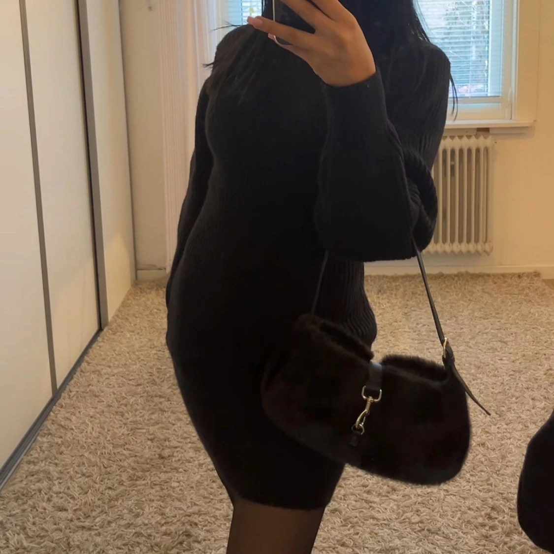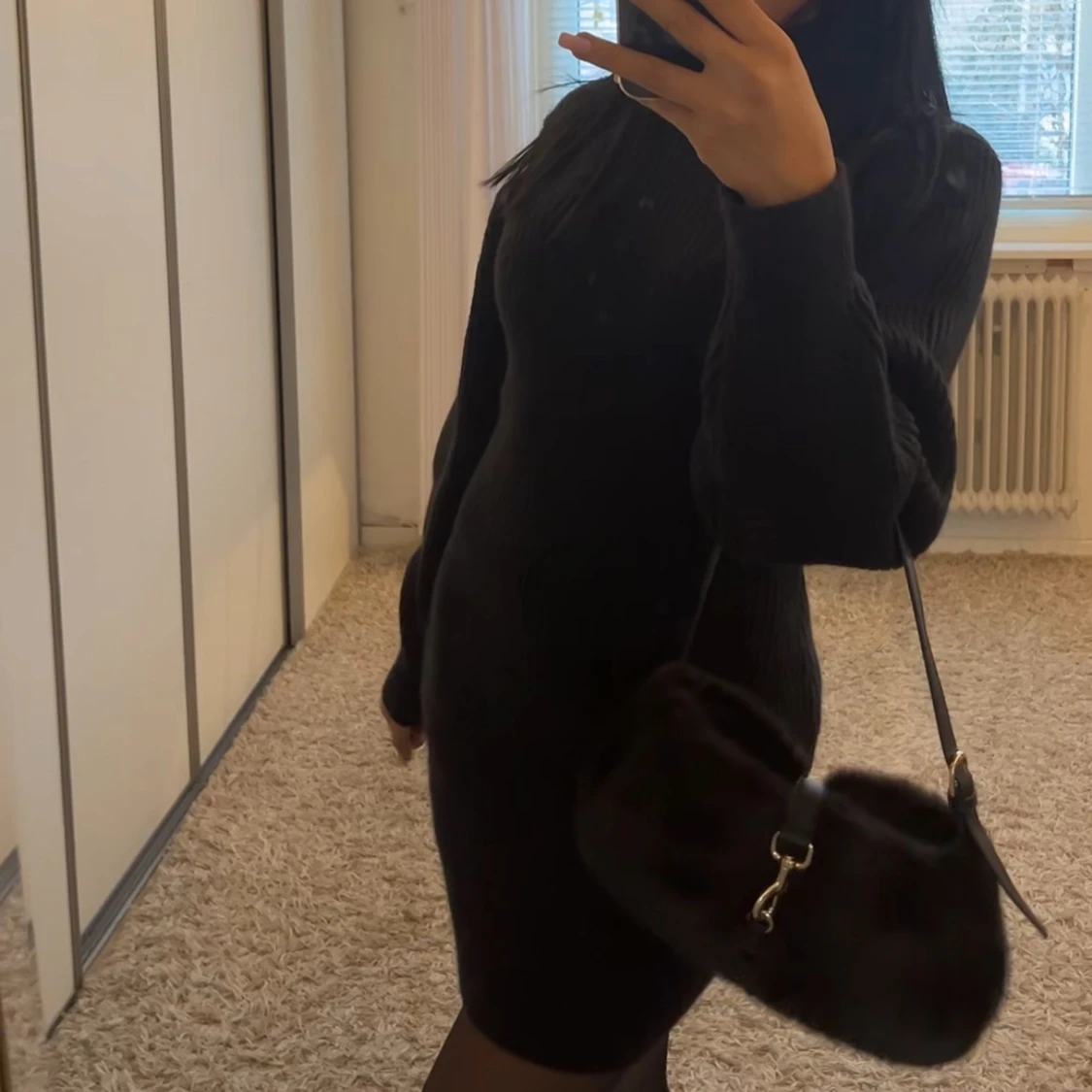 Svart stickad långärmad klänning