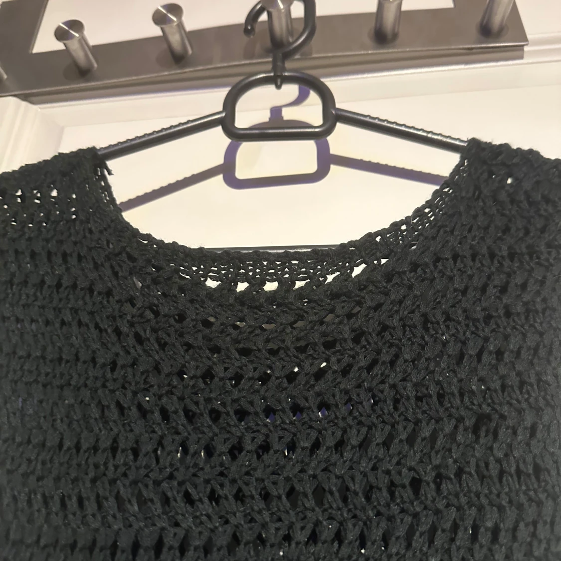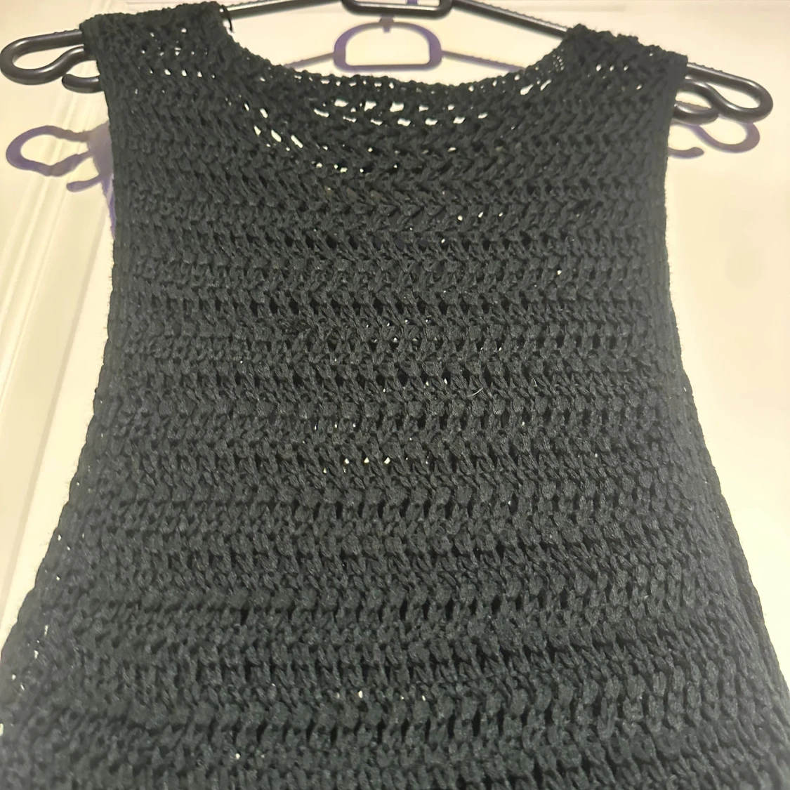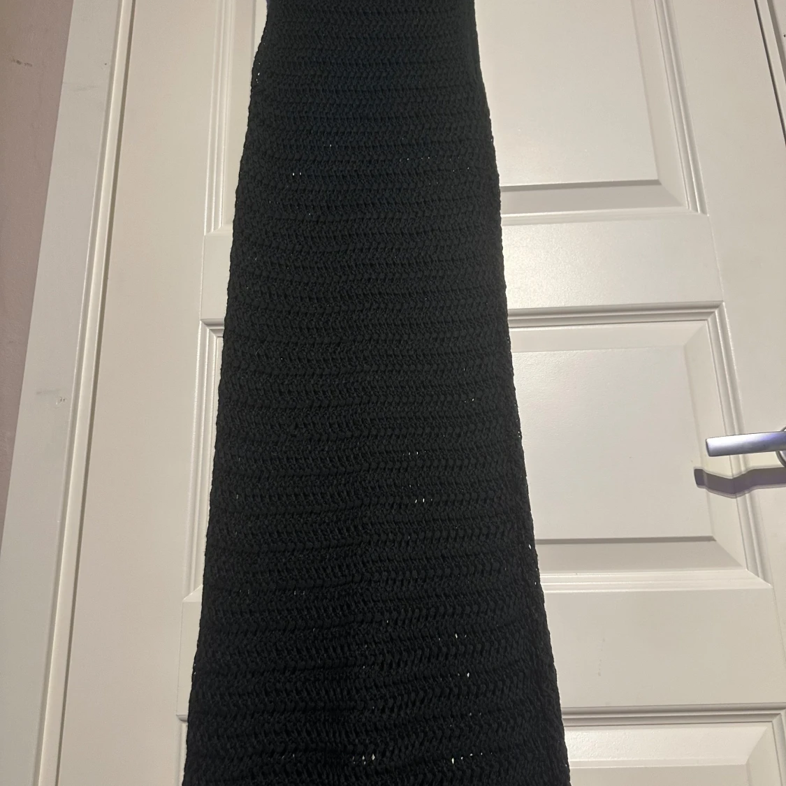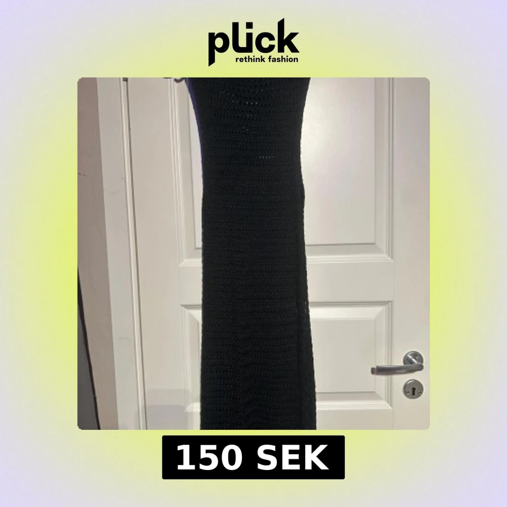 Snygg svart stickad långklänning med ett enkelt och stilrent mönster. Perfekt för en elegant look. Klänningen har en rund hals och är ärmlös, vilket gör den både bekväm och chic.