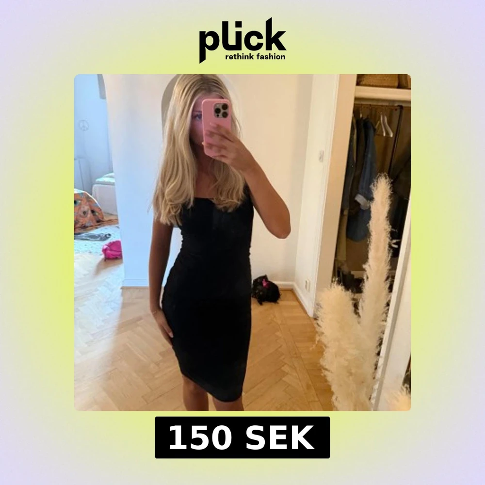 Säljer en svart, tight klänning med ärmlös design och smala axelband. Klänningen har en rak, kroppsnära passform och slutar strax ovanför knäna. Perfekt för dig som gillar en enkel men snygg look. Materialet känns mjukt och stretchigt.
