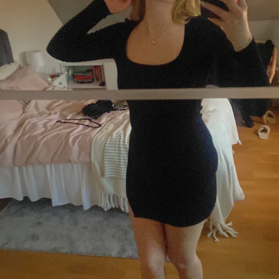 Snygg svart tight klänning med långärmad design. Perfekt för en stilren look. Klänningen har en enkel och elegant stil som framhäver figuren.😜Passar S och M