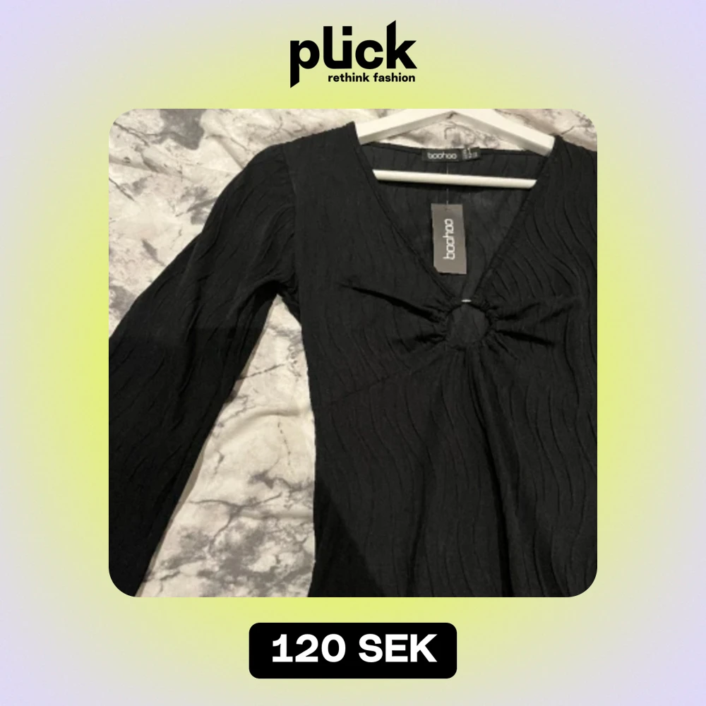 Säljer en helt oanvänd svart och elegant klänning från Boohoo i Stl. S. Säljer för 120kr+frakt (kan ev mötas upp)😊
