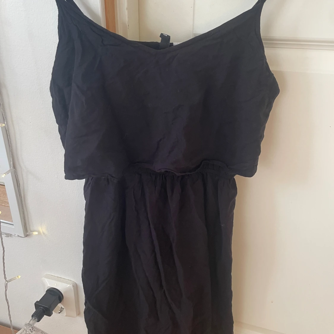 Svart klänning med en volang upptill, i storlek 38 men den är som en XS