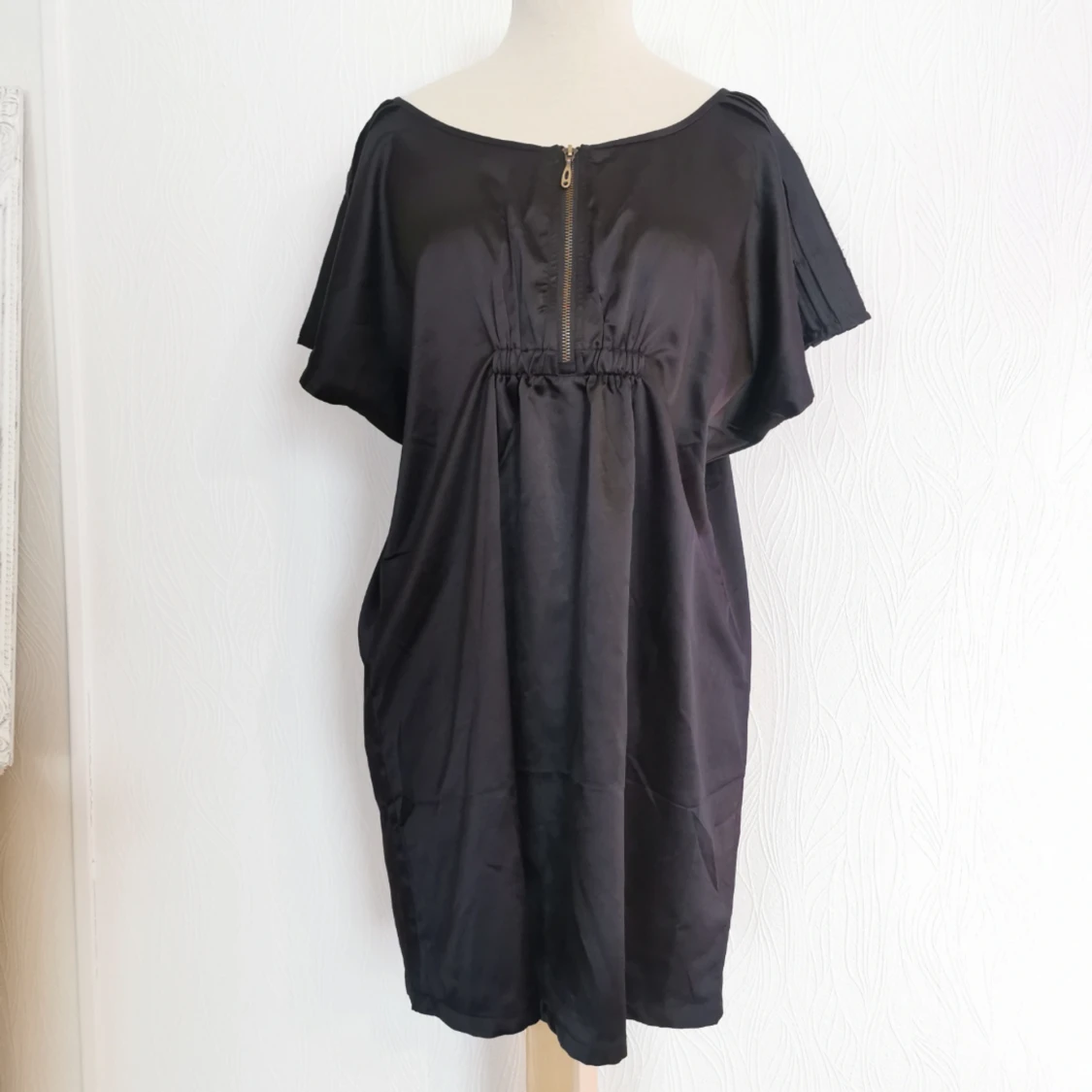 Vacker svart klänning/tunika. Märke: ZE-ZE. Storlek: L men kan användas som M även. Skick: oanvänd med prislapp kvar, ordinarie pris 399:-. Pris: 150 kronor eller bud. Frakt: Betalas av köparen.