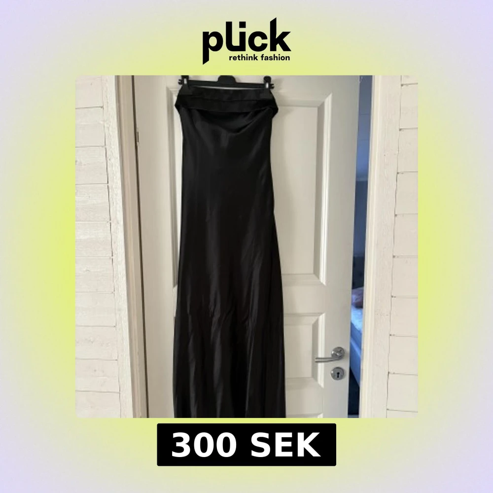 Svart lång satin klänning. Säljer då den tyvärr är lite lång på mig som är 163 cm. Den har resår på ryggen vilket gör att den sitter uppe ordentligt! Perfekt till bal eller fest😍
