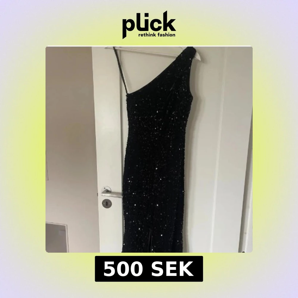Supersnygg svart långklänning med glittriga paljetter och en axelbandslös design. Perfekt bakgrund balklänning