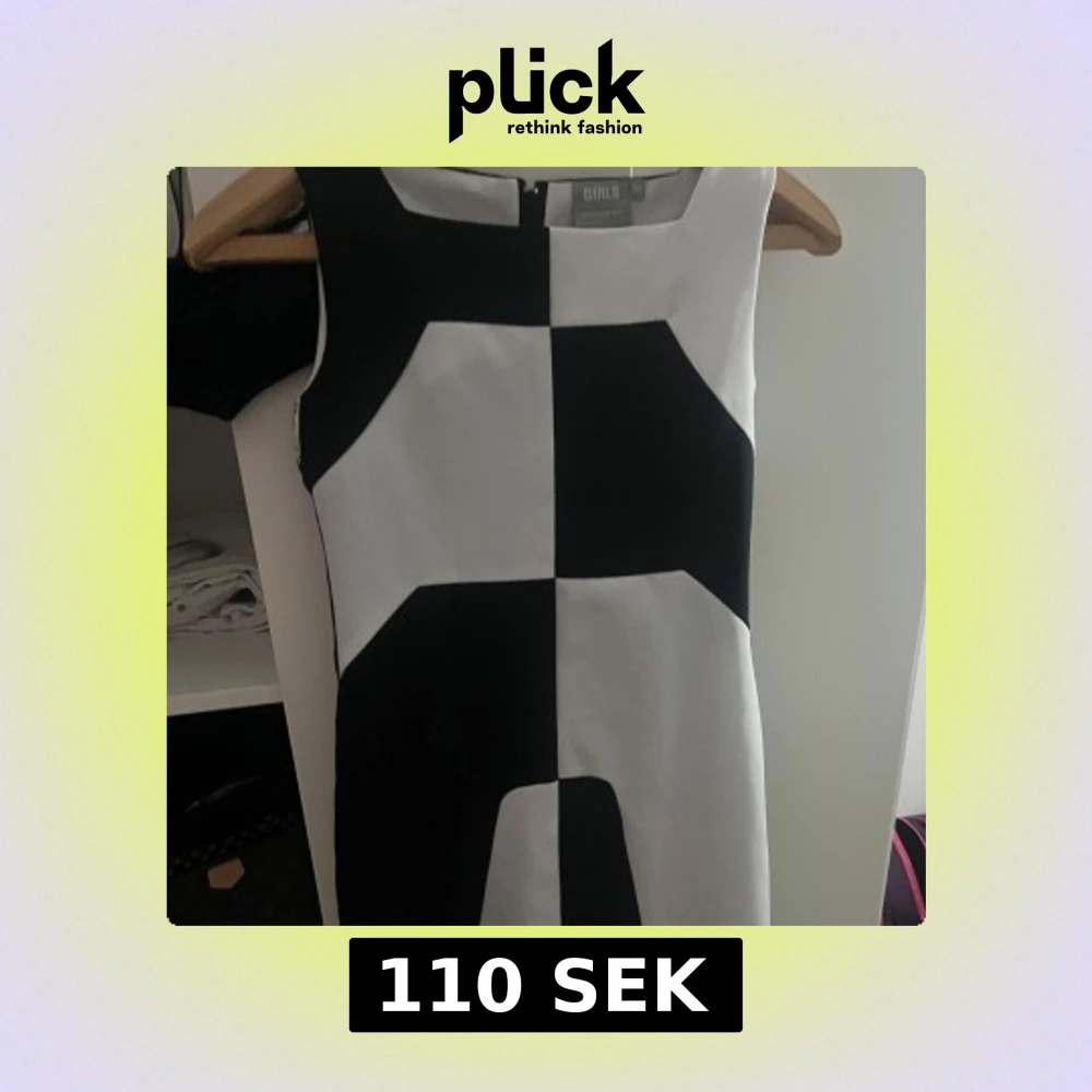 Cool svartvit klänning från KappAhl med grafiskt rutigt mönster. Ärmlös modell med rund hals och dragkedja bak. Perfekt för dig som gillar retrostil och vill sticka ut med en unik look.
