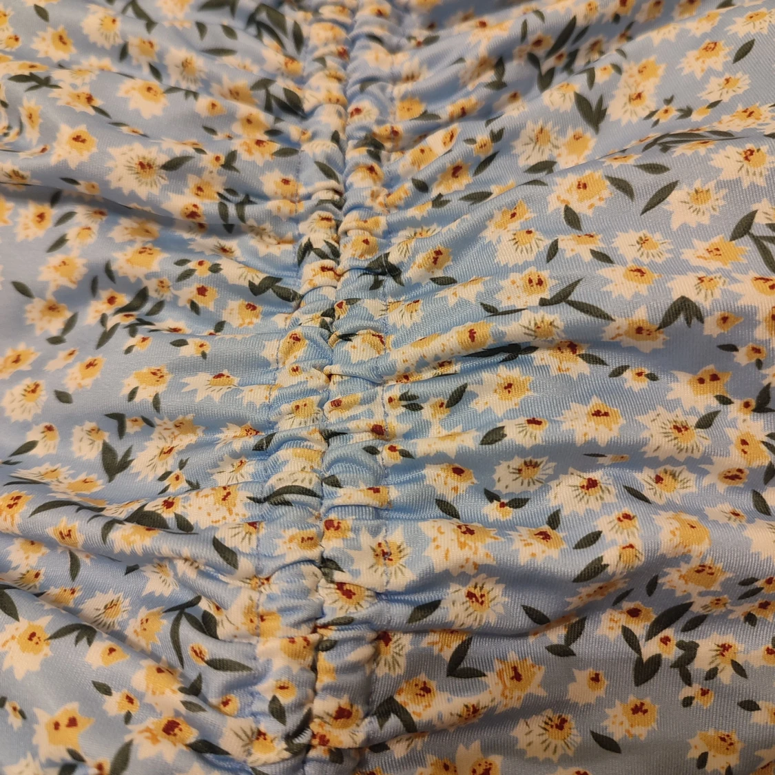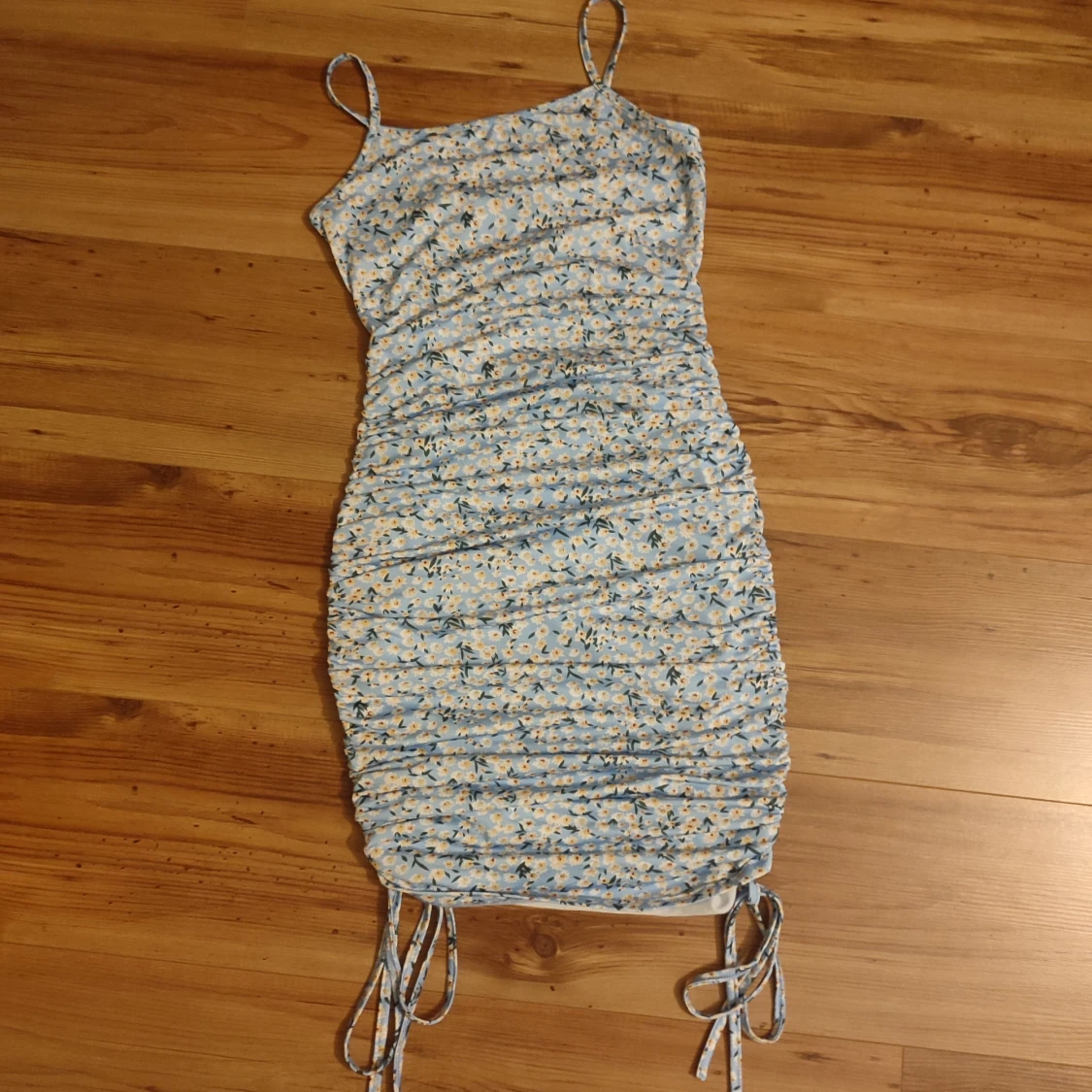 Säljer en söt blommig klänning från Shein i ljusblått med små gula blommor. Klänningen har smala axelband och en åtsittande passform med knytband i nederkant. Längden på klänningen går att justera med hjälp av banden vilket gör att man kan ha den som en kort klänning eller ända ner till under kväna. Perfekt för sommarens varma dagar! 🌼