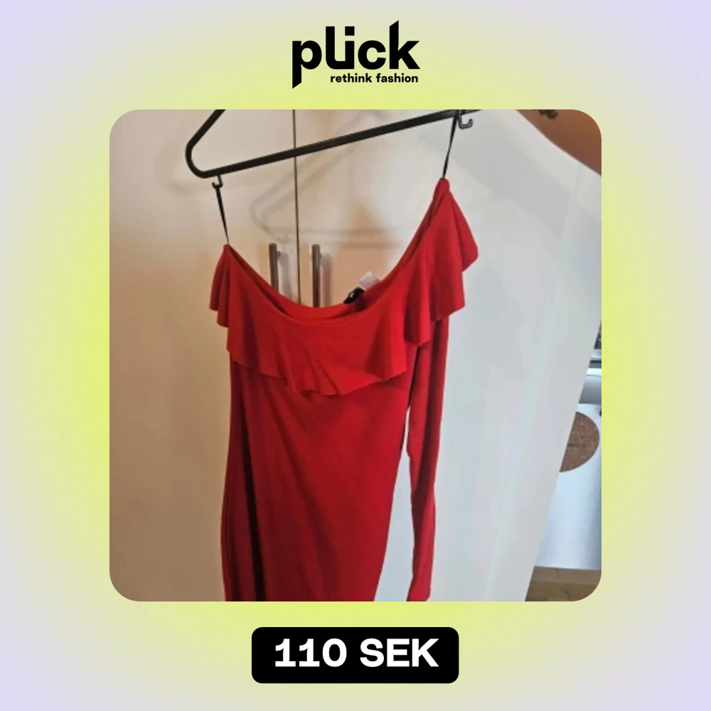 Säljer nu en röd tajt klänning med en långarm och andra off shoulder. Sparsamt använd