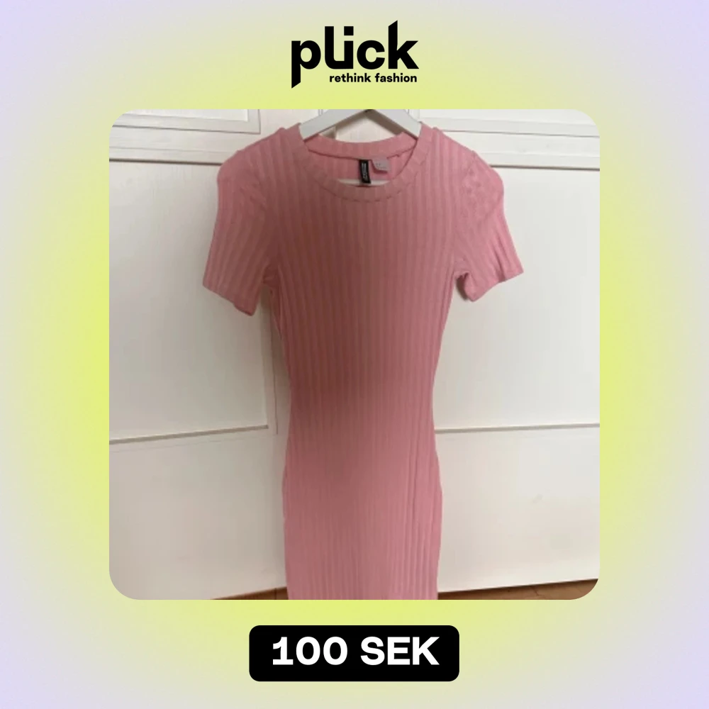 Rosa tajt klänning men en tjock ribbning 🩷 Klänningen är köpt från HM från nåt år tillbaka och har andvänts ca 1-2 gånger. Klänningen går ca 1,5 decimeter över knäna och är i storlek 34 🩷