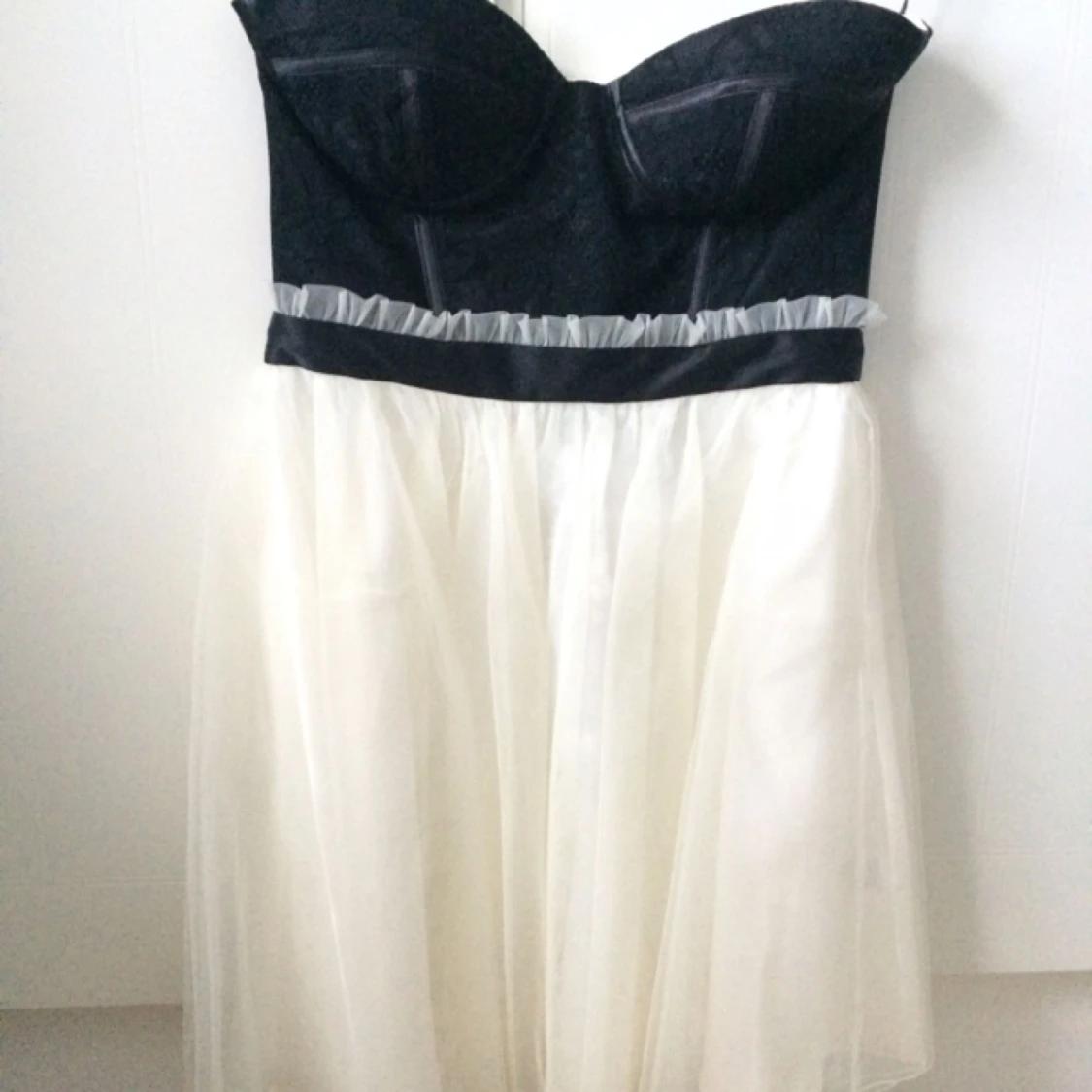 Supersnygg axelbandslös klänning som slutar ovanför knäna. Innanför kuporna finns ett silikon/gummi-rem som gör att klänningen hålls upp bra! Oanvänd. S men passar även S/M. Passar perfekt till balen, studenten eller någon annan festlighet! Köparen står för frakten.