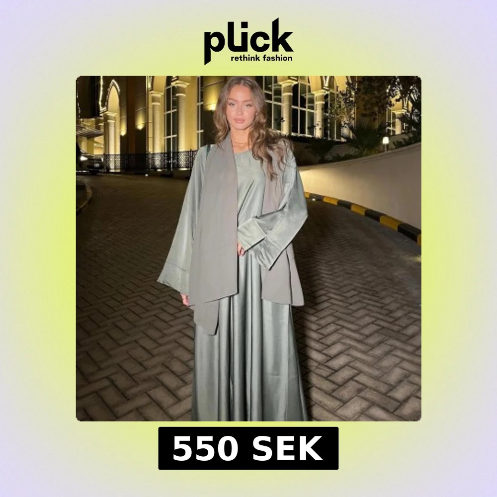 Fast pris, inga bud! Kommer inte besvara något☺️ - Som ny - 3 delat set: abaya, hijab och bälte 🌿 - Referensbilder hur den sitter på Maria Reina🌸 - Står storlek 60 men vi har fått gå till skräddare och kortat ner den. Därav priset, går ej lägre! 😃 -Längden på abayan nu är 137 cm lång, som en storlek 54 funkar också en 56 (då jag är 167 cm lång)