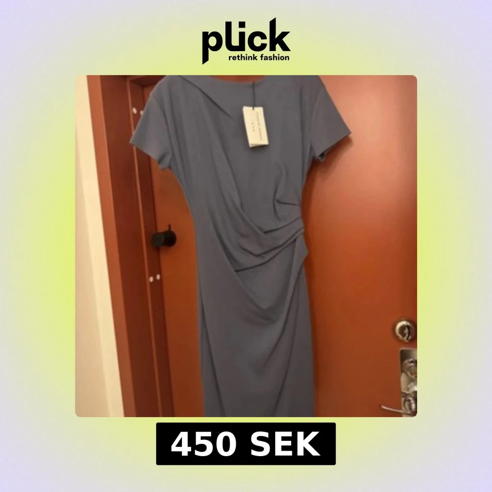 Snygg blå klänning från COS med omlottdetalj i midjan och korta ärmar. Klänningen har en elegant drapering framtill och en mjuk, följsam passform. Perfekt för dig som gillar stilrena och moderna plagg med en twist.