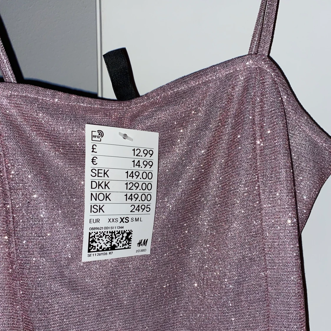 Säljer denna glittriga, korta klänningen med tight passform som är slutsåld i H&M, oanvänd med prislapp kvar. Skickar fler bilder ifall det önskas! Ifall fler vill ha så är det bud som gäller. Köparen står för frakten 🥰❤️