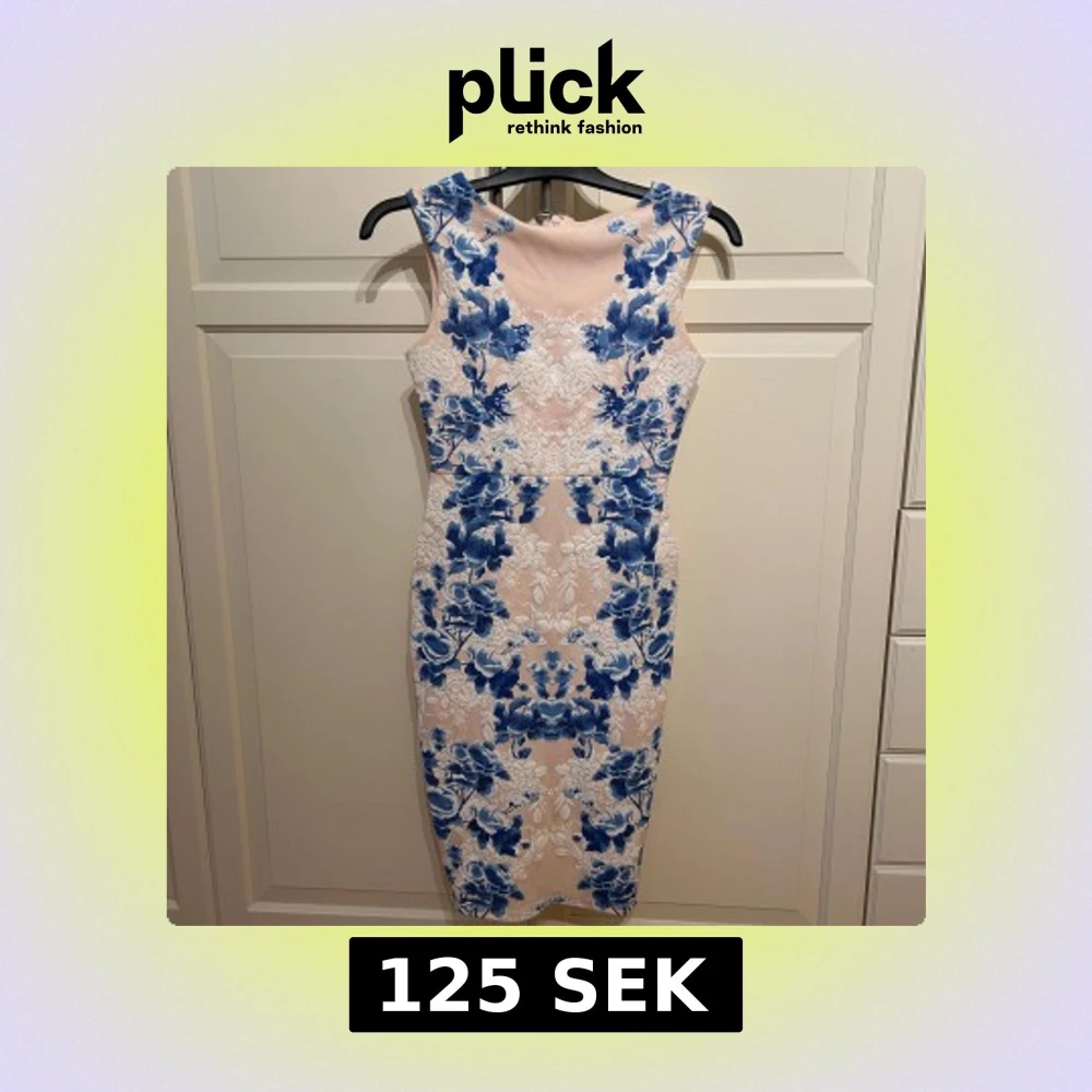 Säljer en snygg, figurnära klänning från Lipsy London i ljusrosa med blått blommönster i strl s