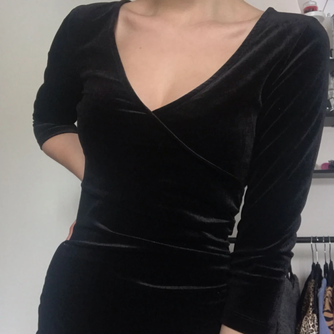 Sammetsklänning med v-ringning. Sparsamt använd, frakt ingår
