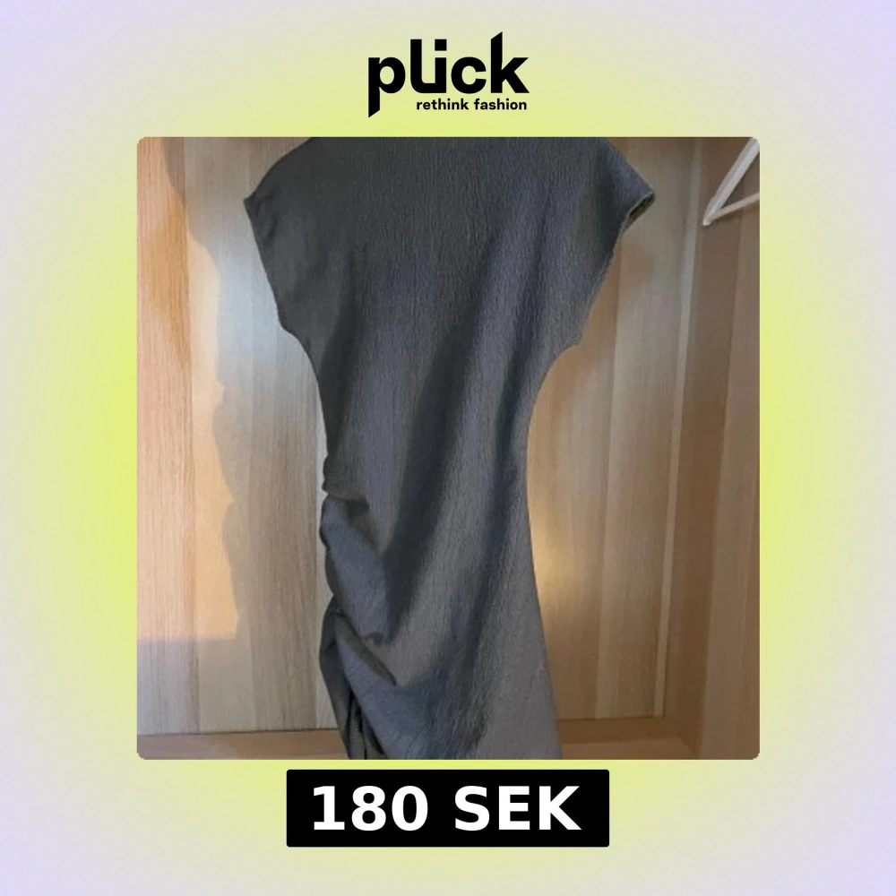 En grå, tight och kort klänning med ribbad struktur. Klänningen har korta ärmar och en lite hög hals, samt en figurnära passform som framhäver siluetten.🥰Använd endast två gånger