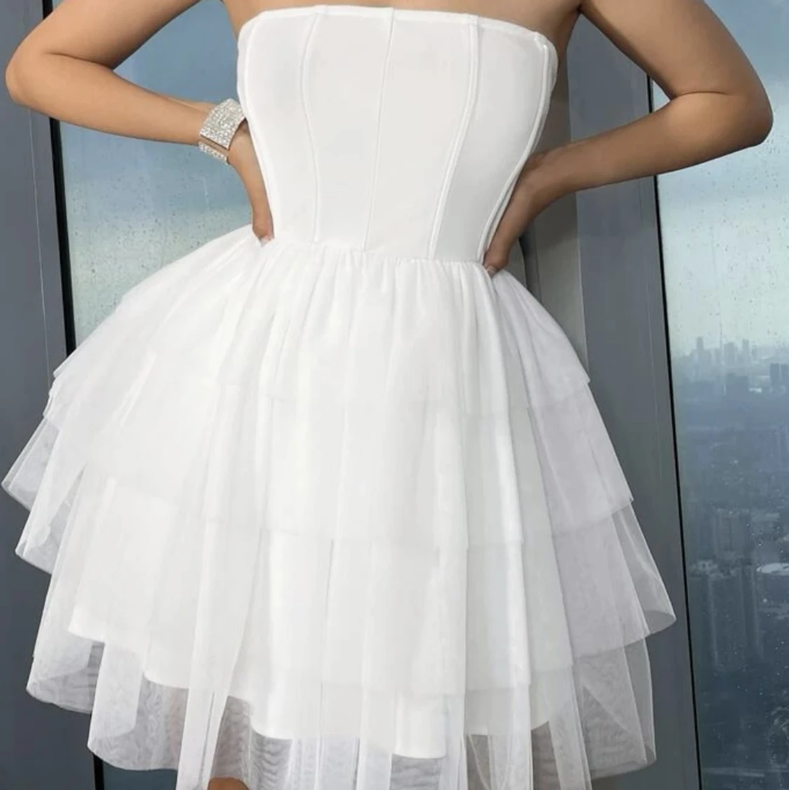 Jätte söt tyll klänning med en korsett topp som jag tänkte ha på studenten men den var alldeles för liten för mig (drf jag inte har bilder mig med på den )