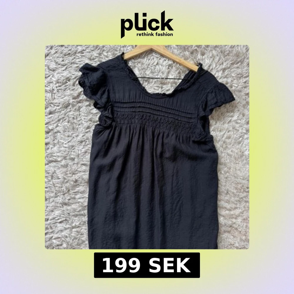 Supersöt svart kortklänning med volangärmar och smockad överdel. Klänningen har en lös passform och är tillverkad i ett lätt, strukturerat tyg som känns luftigt. Perfekt för dig som gillar en enkel men ändå trendig stil. Fler bilder kan skickas om begärat