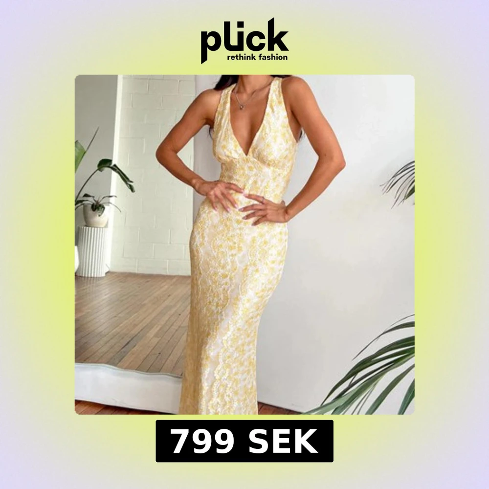 Elegant gul och vit långklänning med blommigt mönster och öppen rygg. Klänningen var tänkt som balklänning men råka ta fel storlek😓så helt oanvänd!