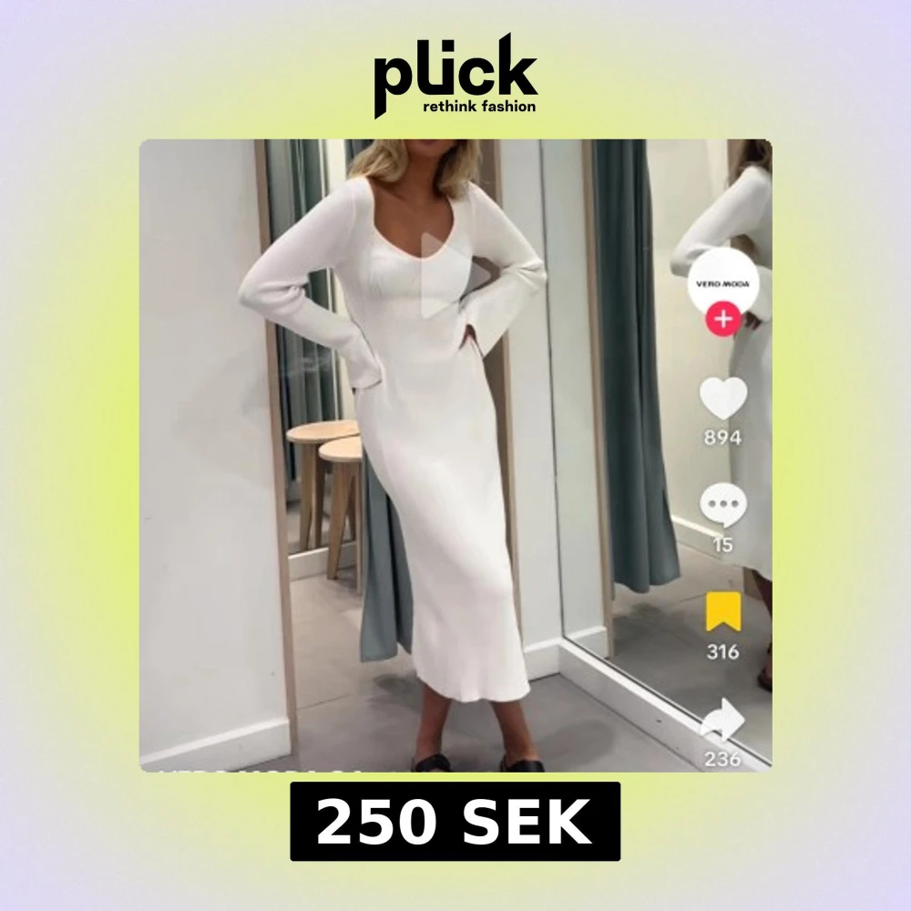 Superfin vit klänning från Vero Moda i ribbat material med vidare ärm.