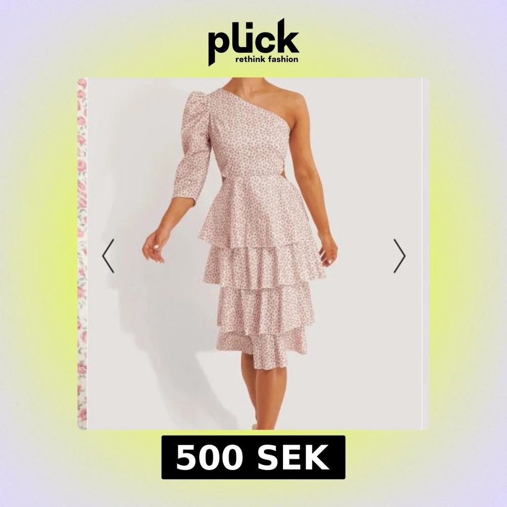 Charmig oneshoulder klänning med blommigt mönster i rosa och vitt. Klänningen har en volangdesign med flera lager och trekvartsärm på ena sidan. Perfekt för en somrig look. Kolla gärna in det andra jag säljer!💘