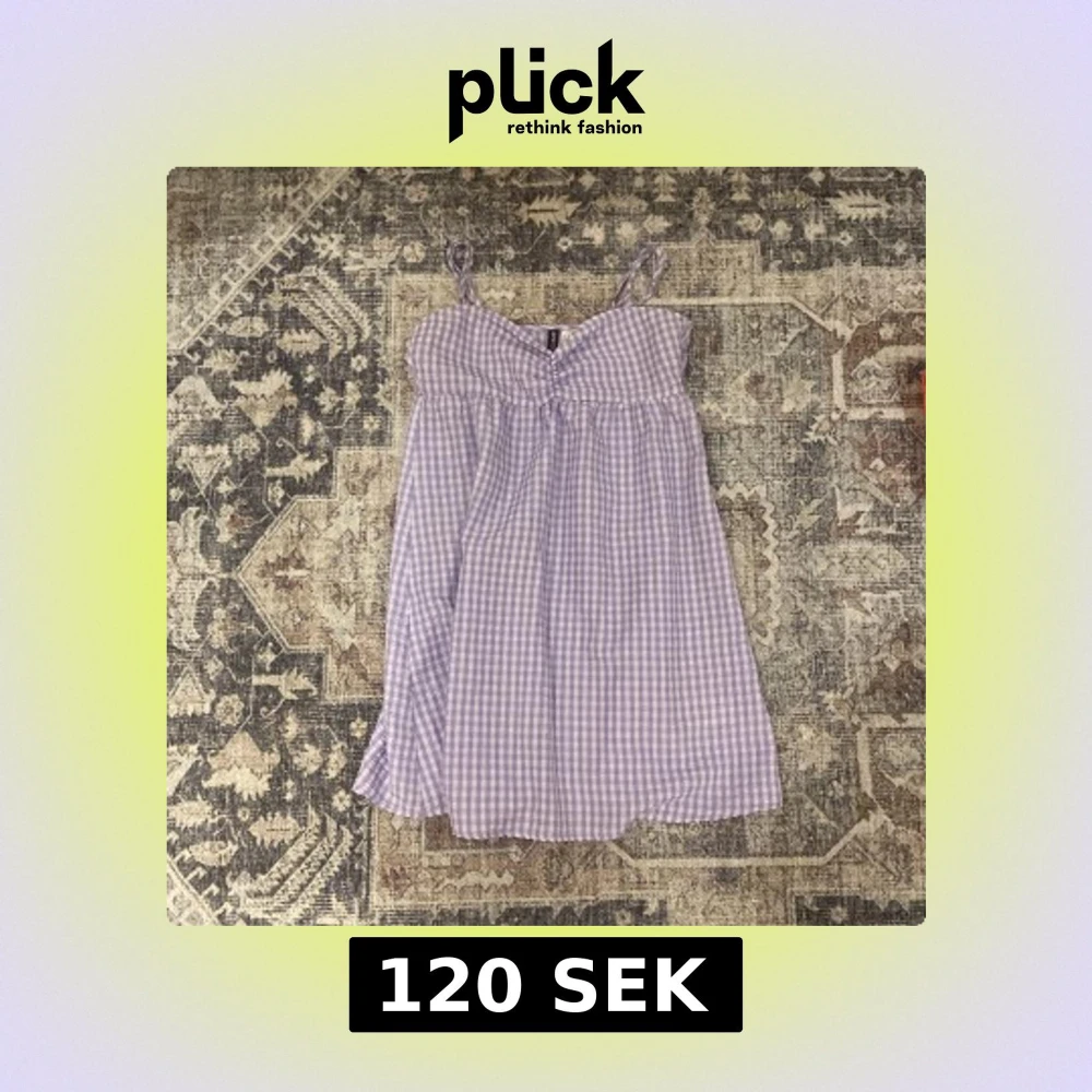 Supersöt lila och vit rutig kortklänning från H&M Divided. Klänningen har smala axelband och en lätt utsvängd passform. Perfekt för varma dagar och ger en fräsch sommarkänsla. Tunt och luftigt material som känns skönt mot huden.