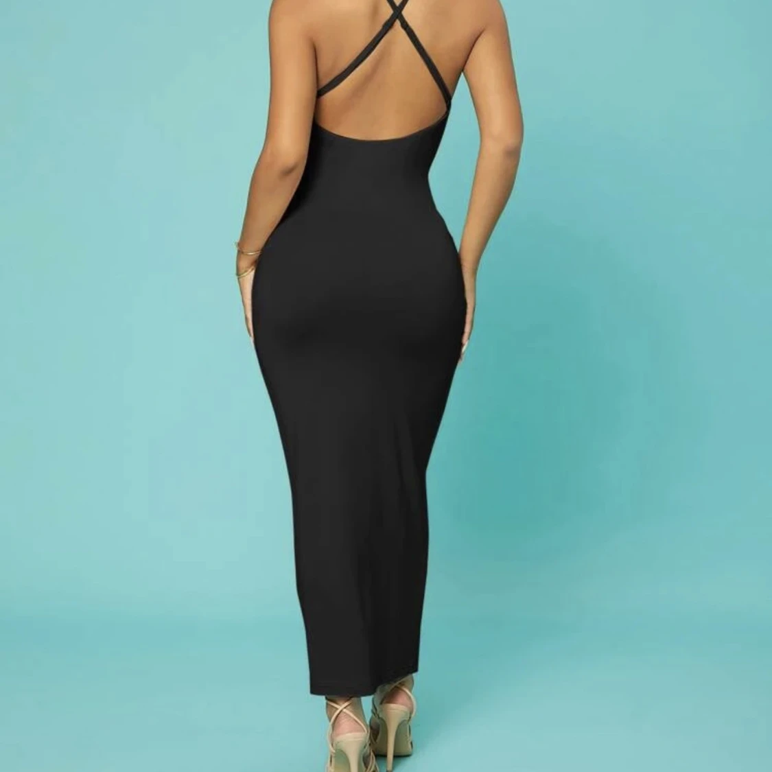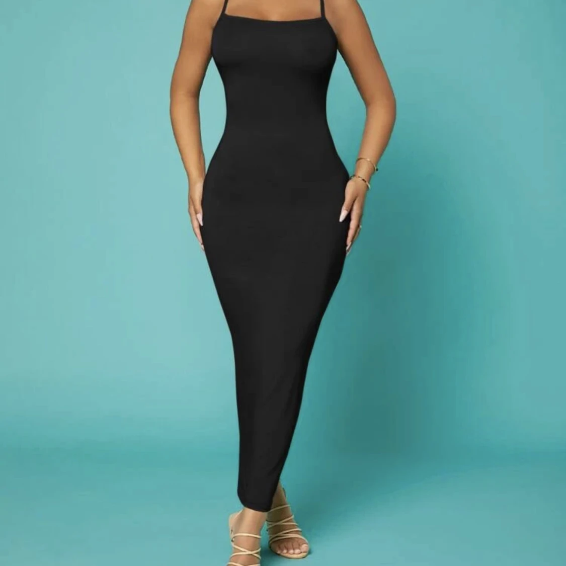 Skimsdupe! En svart långklänning i det skönaste materialet. Perfekt att ha i garderoben då man både kan klä ner den men även upp den eller bära den som en kjol