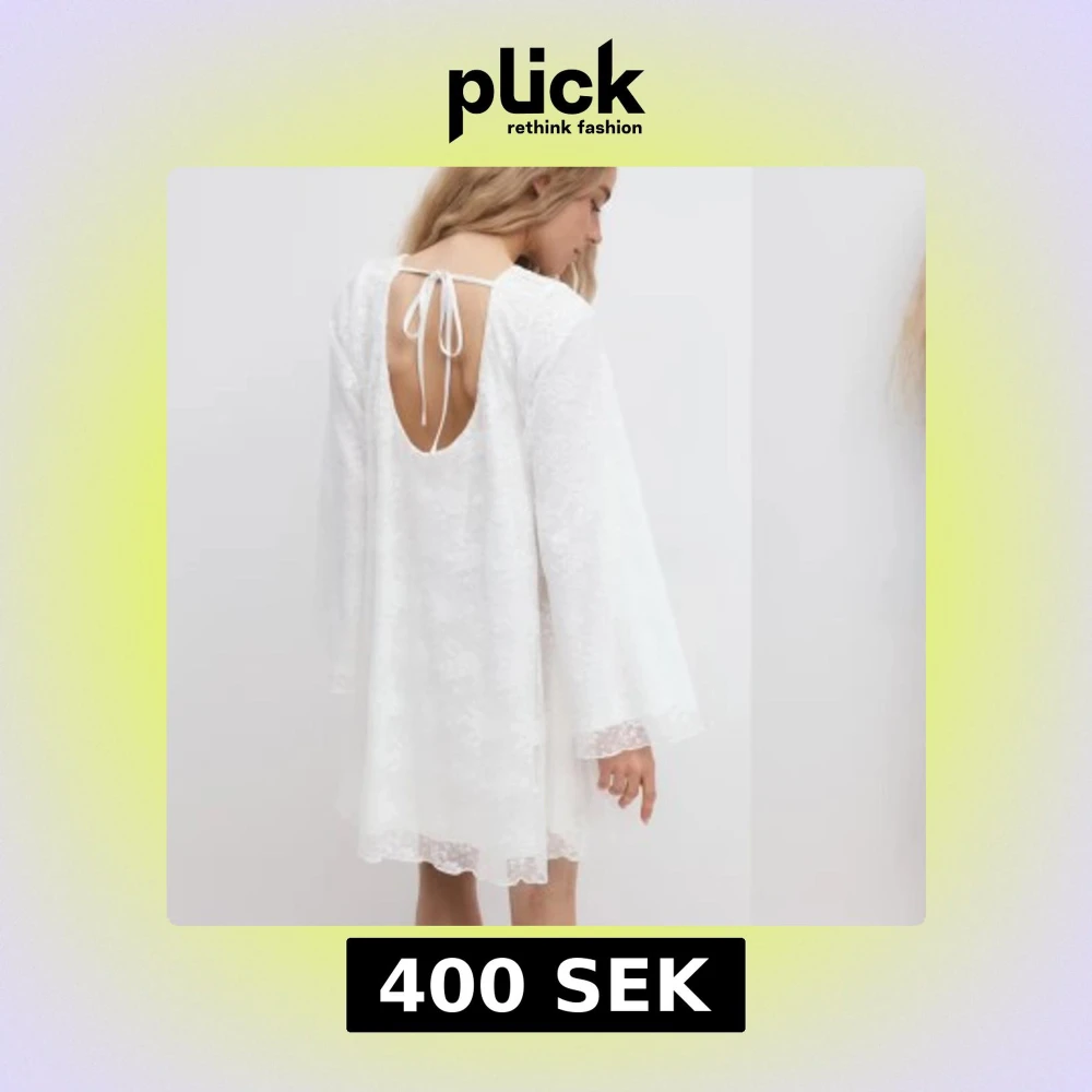 Superfin vit kortklänning i spets med vida ärmar och öppen rygg med knytband. Klänningen är perfekt för studenten men kom tyvärr aldrig till användning på min. Klänningen är endast testad o alla lappar är kvar. Jag kommer posta samma dag, alt dagen efter då studenten är så pass nära nu. Pris går alltid att diskutera. Hör av dig vid eventuella frågor! 🥰