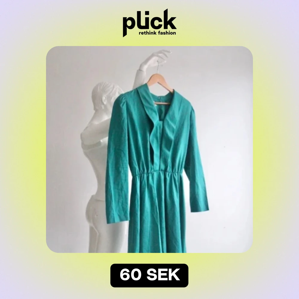 Vintage turkos klänning med fin glans och krage. Resår i midjan. Bra skick!