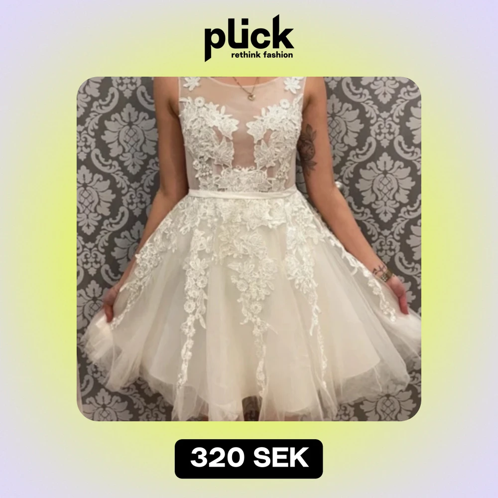 Säljer denna drömmiga klänningen i storlek 34. Broderi, knytning i ryggen och lite glitter i tyget 💗 I mycket fint skick. Perfekt till avslutning, bröllop eller midsommar. 🤩Modellen är 170 cm lång.