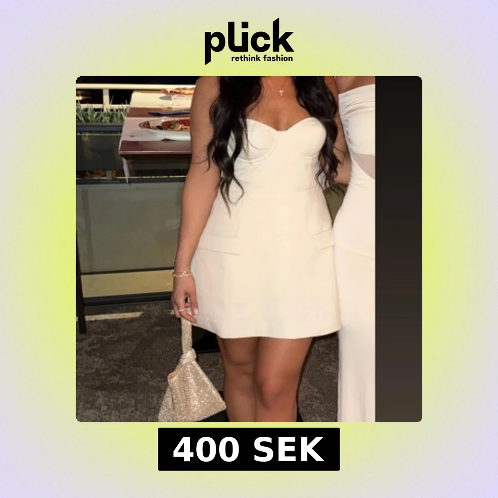 Supersnygg vit kort klänning från Oh Polly med hjärtformad byst och axelbandslös design. Använd 1 kväll. Storlek 38. Säljs för 400 kr