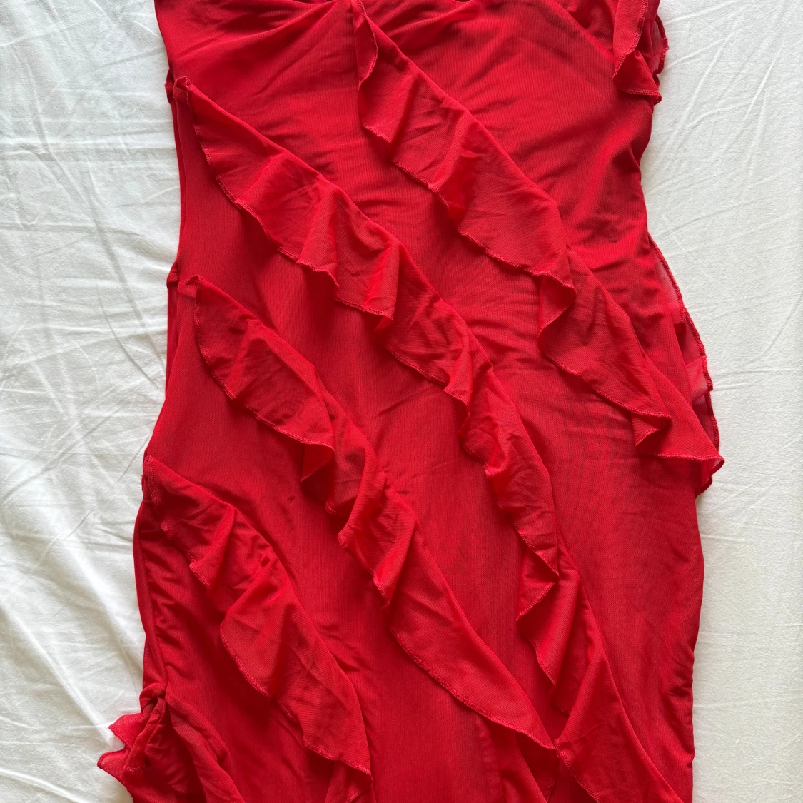 Jag säljer min klänning från Oh Polly med volanger och slits. Oanvänd då jag inte hittat tillfälle att ha den. Passar en S/M Nypris 920 kr