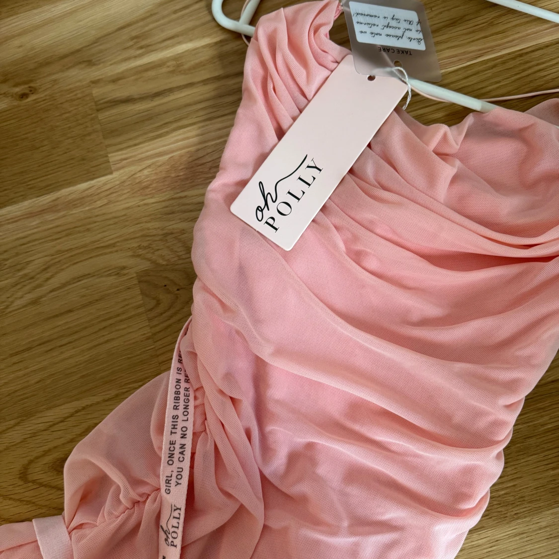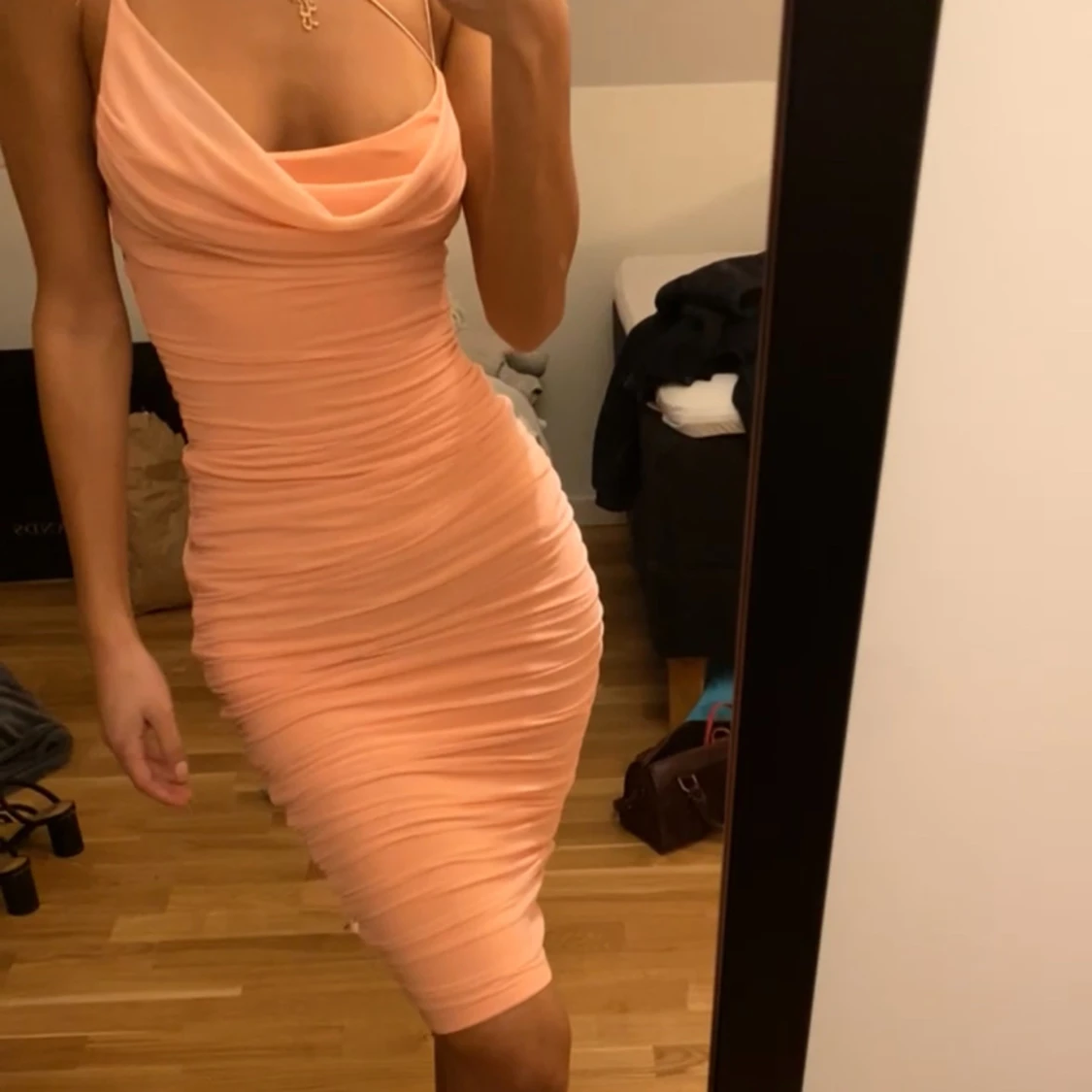 Säljer en superfin peachfärgad tight klänning med smala axelband och figurnära passform. Aldrig använd, Prislapp Kvar.