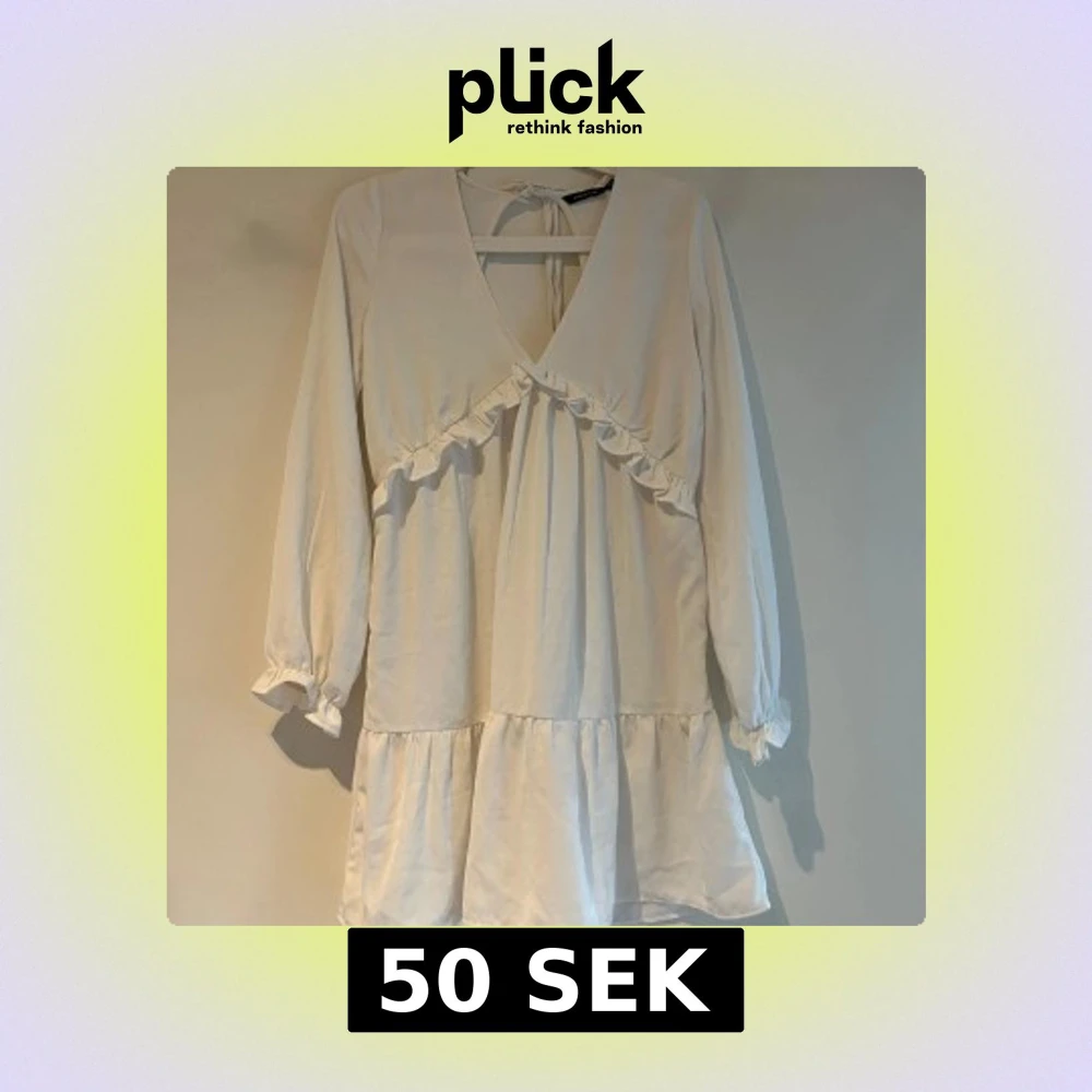 Supersöt vit kortklänning från Ullared med volangdetaljer, v-ringning och knytning i nacken. Aldrig använd 🤍