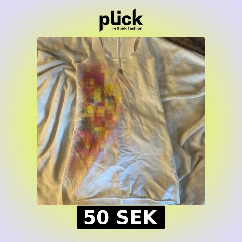 Säljer en vit mini klänning från MET i storlek S. Klänningen har ett färgglatt blockmönster i rosa, gul och lila på framsidan och en liten metall-detalj vid halsringningen. Ärmlös och med sportig racerback, perfekt för dig som gillar unika detaljer.
