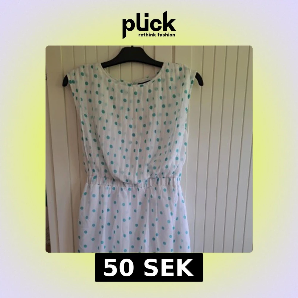 Superfin vit kortklänning från UNIQ med turkosa prickar och plisserad framsida. Klänningen har en avslappnad passform och är ärmlös, perfekt för varma dagar. Söt och lekfull stil som sticker ut!