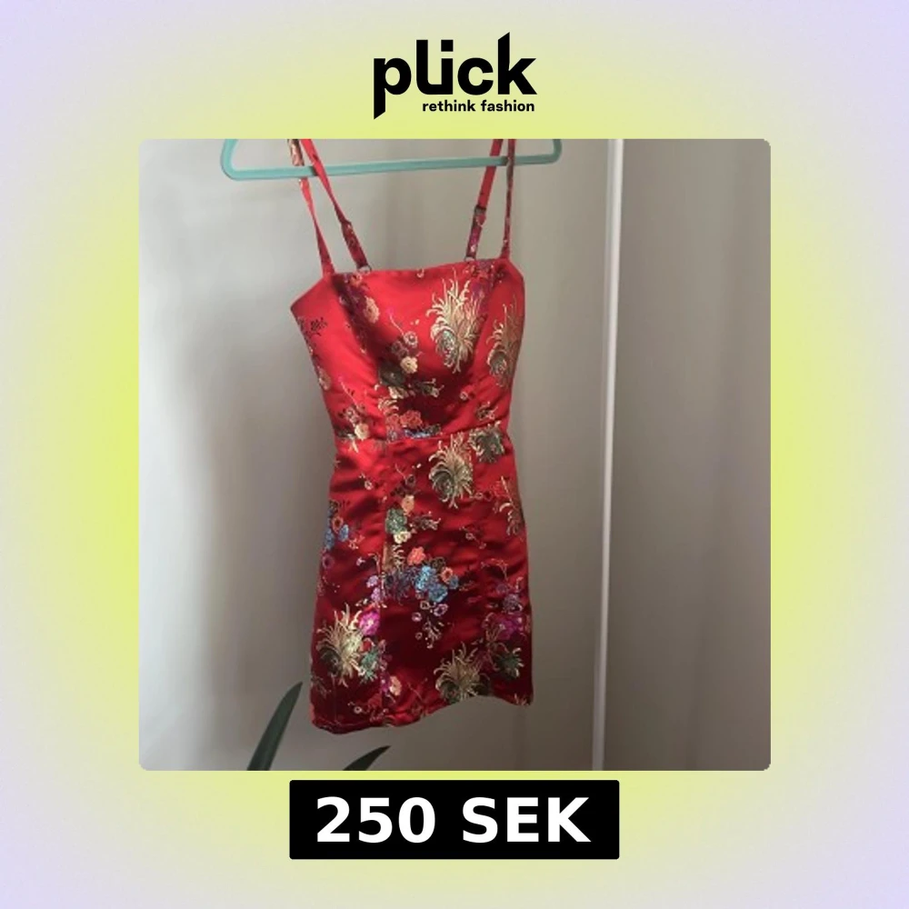 Snygg röd klänning i satin med blommigt mönster och justerbara axelband. Perfekt för en färgglad look med vackra detaljer i guld och andra färger. Klänningen har en smickrande passform och är kort i modellen. Storlek XS från urban outfitter, nypris 450kr
