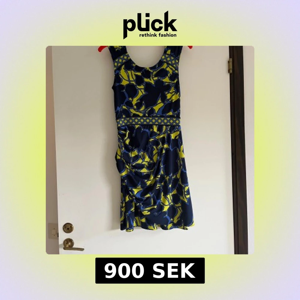 Snygg kortklänning från Lauren Ralph Lauren med blått och gult blommönster. Klänningen har breda axelband, markerad midja med grafiskt band och lätt drapering i sidan. Perfekt för dig som gillar färg och mönster! Inte säker på att det är Ralph Lauren men köpt i design affär i St Topez.