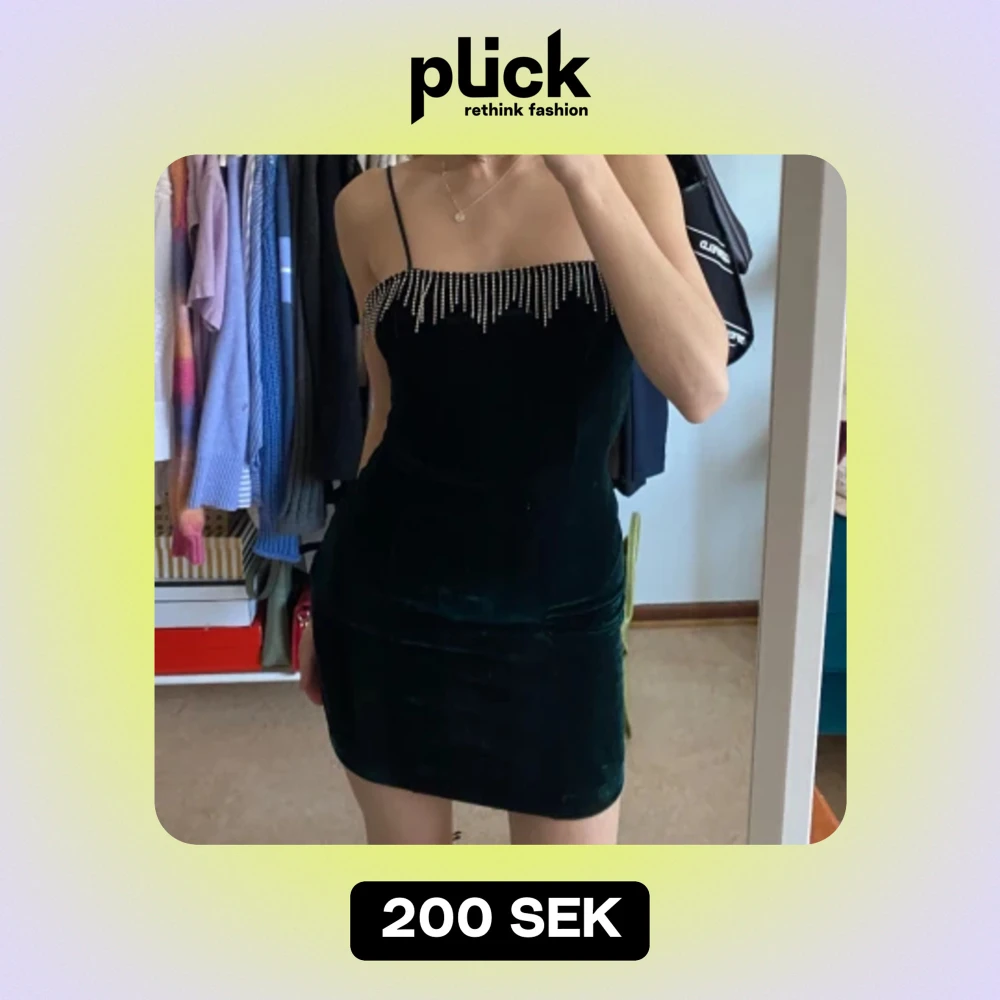 Super snygg cocktailklänning som passar perfekt till en utekväll, fest eller firande. Super fint sammetslikt tyg som skimrar mörkgrönt och stenar på toppen🤩