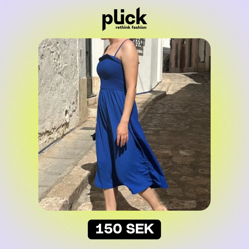 Blå sommarklänning från H&M. Endast använd 1 gång (bild 2 är lånad). Justerbara axelband och resår över bröstet.
