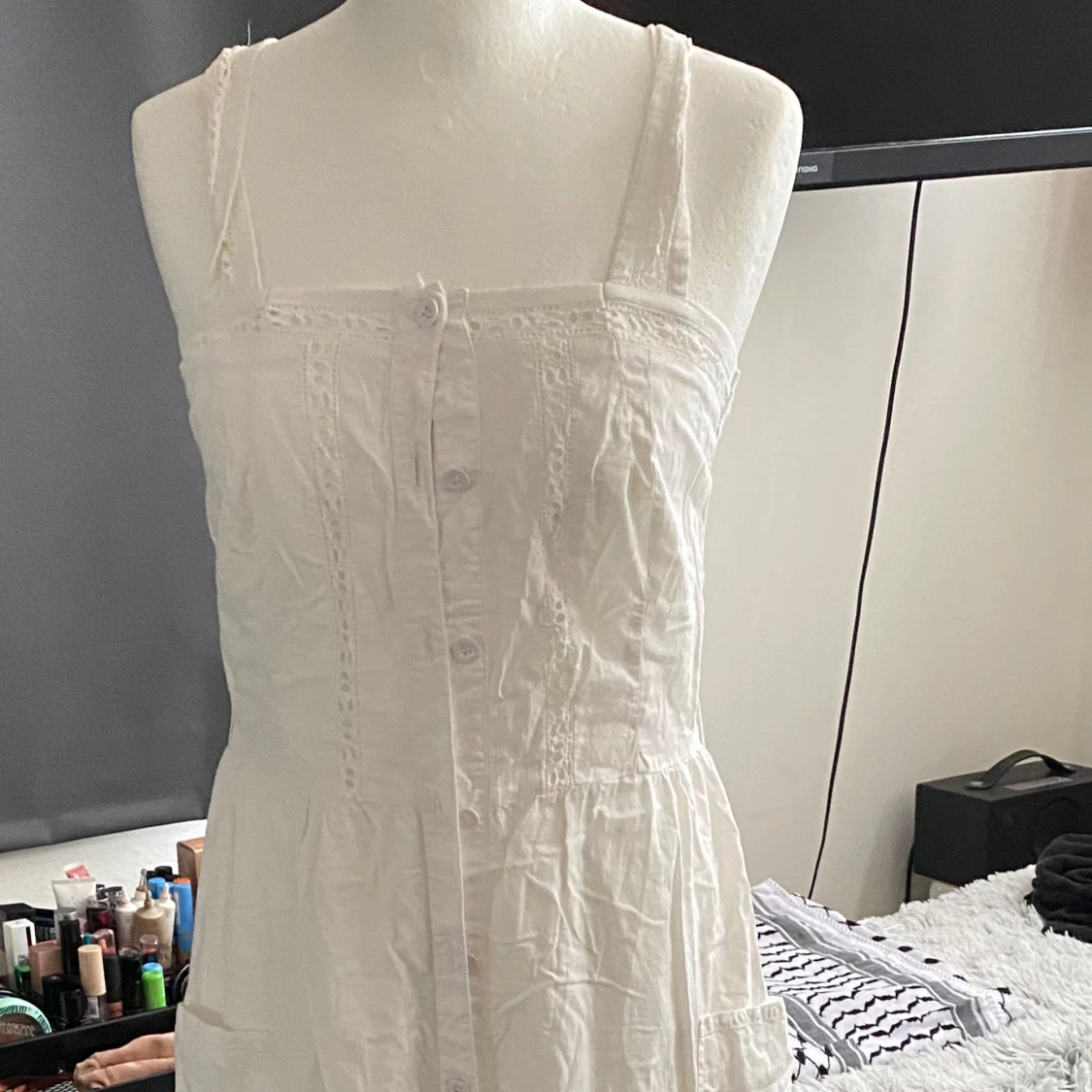Säljer denna så vackra vita klänningen har jätte fina detaljer super elegant och går ej att hitta i butik utan är köpt för länge sen men den är i nyskick då jag har två.