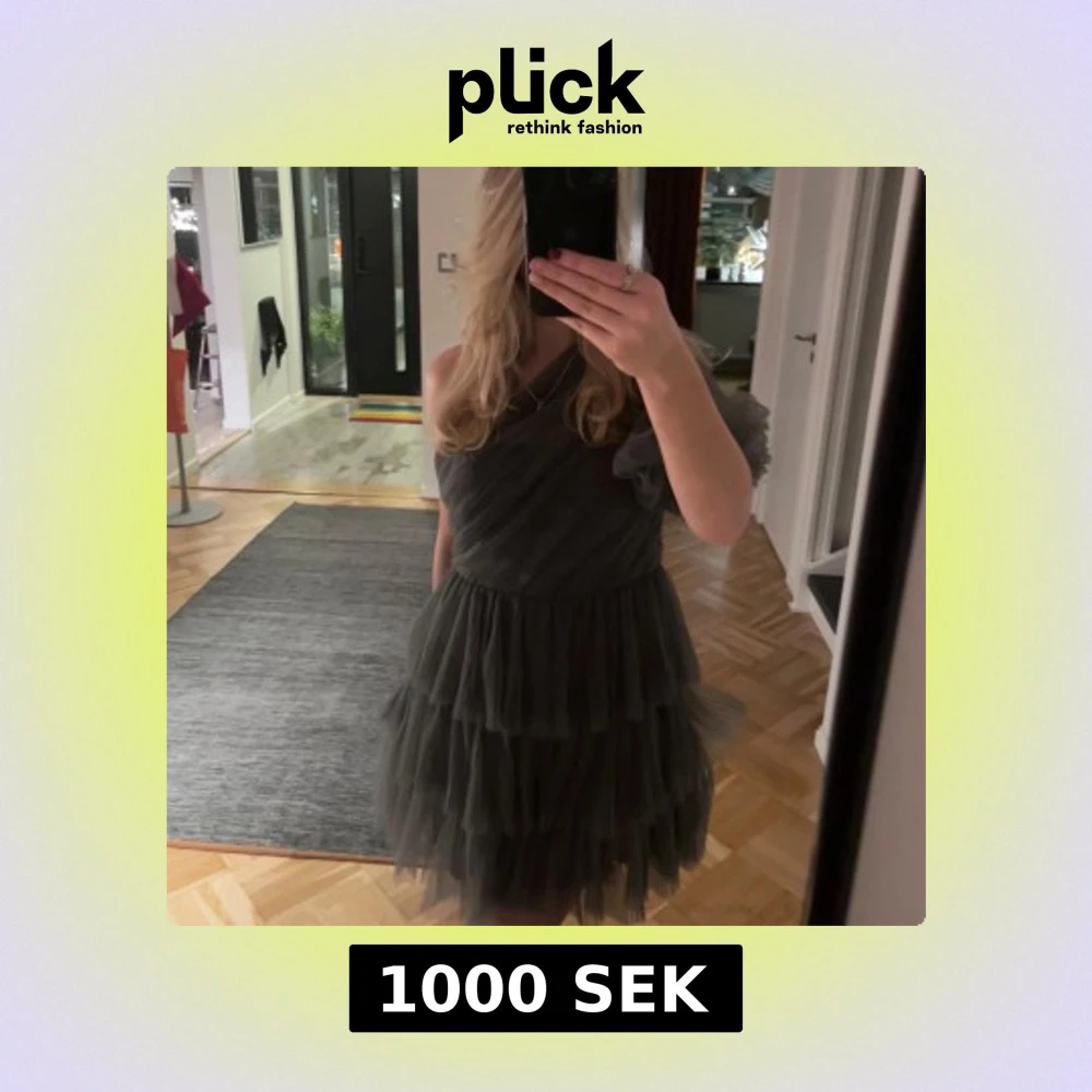 Supersnygg grå kortklänning från Malina med flera lager volanger och en unik oneshoulder-design. Använd bara en gång och köptes för 3500kr. Hör av er så kan pris diskuteras. Storlek M men passar även mig som har S.